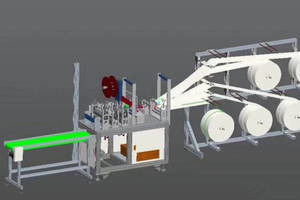 Nach den HauptteilMaschinenoutputs wird der Maskenkörper, das Maskenkarosserieblech zum Drehenmechanismus durch eine Förderbandstruktur übermittelt. Der Umkehrungsmechanismus wird benutzt, um die Maskenplatte auf den Gurt leicht zu schlagen, der an die Ohrbandmaschine angeschlossen wird, und dann wird das Maskenblatt zur ersten Maskenplatte auf der Front der Ohrbandmaschine durch das Förderband übermittelt, und schließlich wird das Maskenblatt auf das Ohrband durch den Zylinder gesetzt, der die Maskenplatte der Maschine, die Ohrbandmaschine eindrückt, wird verwendet, um das Schweißen der Ohrbänder der Maske und des Randes abzuschließen, dadurch abschließt man die Produktion eines Ohrband-Maskenproduktes.